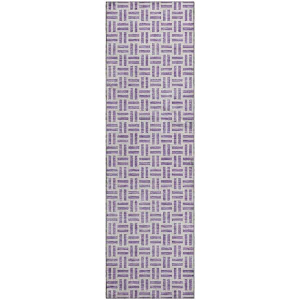 Mayfield Premium Machine Washable Abstract AMF978 Lavender 2 ft. 3 in. x 7 ft. 6 in. Runner Rug