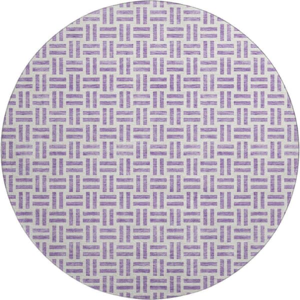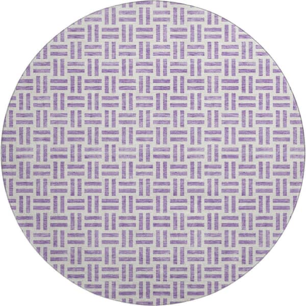 Mayfield Premium Machine Washable Abstract AMF978 Lavender 8 ft. x 8 ft. Round Rug