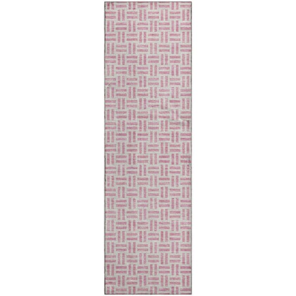 Mayfield Premium Machine Washable Abstract AMF978 Pink 2 ft. 3 in. x 7 ft. 6 in. Runner Rug