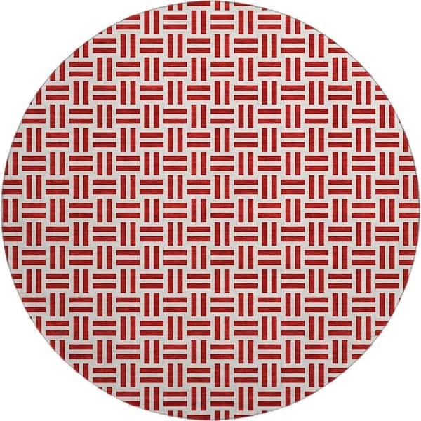 Mayfield Premium Machine Washable Abstract AMF978 Red 8 ft. x 8 ft. Round Rug