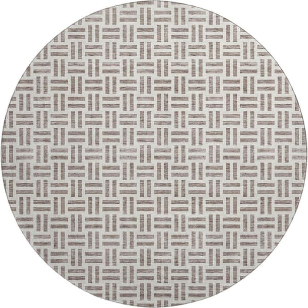 Mayfield Premium Machine Washable Abstract AMF978 Taupe 8 ft. x 8 ft. Round Rug