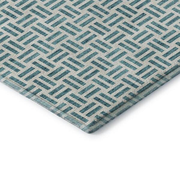 Mayfield Premium Machine Washable Abstract AMF978 Teal 3 ft. x 5 ft. Area Rug