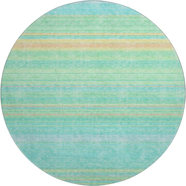 Mayfield Premium Machine Washable Abstract AMF979 Aqua 8 ft. x 8 ft. Round Rug