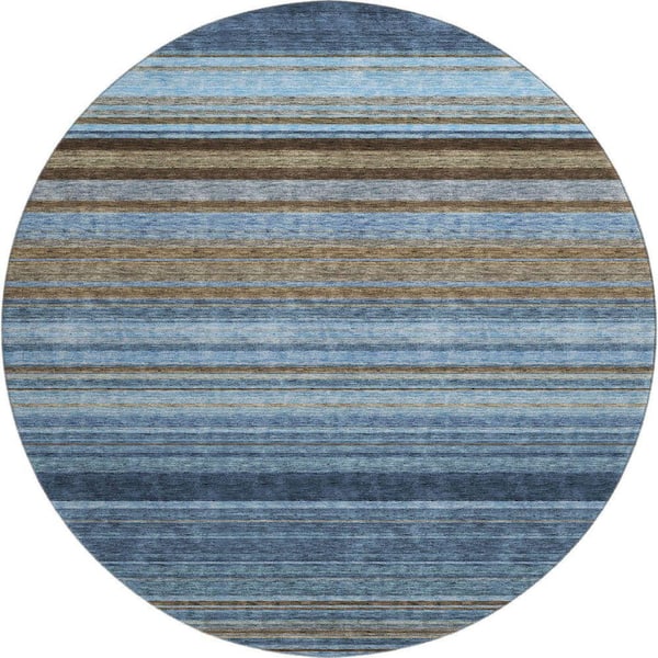 Mayfield Premium Machine Washable Abstract AMF979 Navy 8 ft. x 8 ft. Round Rug