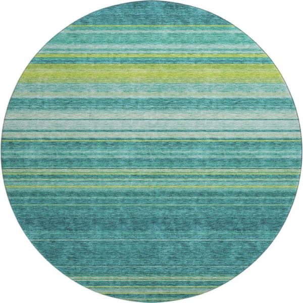Mayfield Premium Machine Washable Abstract AMF979 Teal 8 ft. x 8 ft. Round Rug