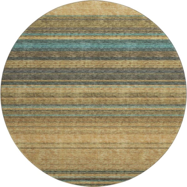 Mayfield Premium Machine Washable Abstract AMF979 Wheat 8 ft. x 8 ft. Round Rug