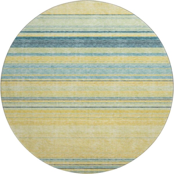 Mayfield Premium Machine Washable Abstract AMF979 Yellow 8 ft. x 8 ft. Round Rug