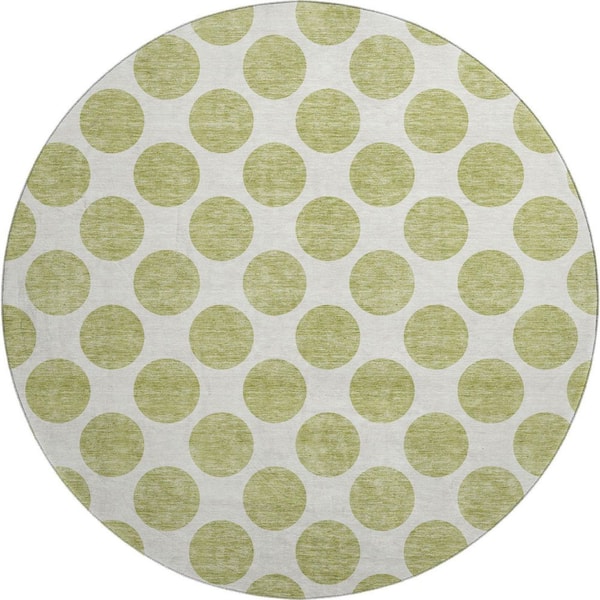 Mayfield Premium Machine Washable Abstract AMF980 Aloe 8 ft. x 8 ft. Round Rug