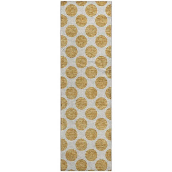 Mayfield Premium Machine Washable Abstract AMF980 Gold 2 ft. 3 in. x 7 ft. 6 in. Runner Rug