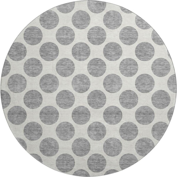 Mayfield Premium Machine Washable Abstract AMF980 Gray 8 ft. x 8 ft. Round Rug