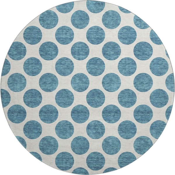 Mayfield Premium Machine Washable Abstract AMF980 Teal 8 ft. x 8 ft. Round Rug