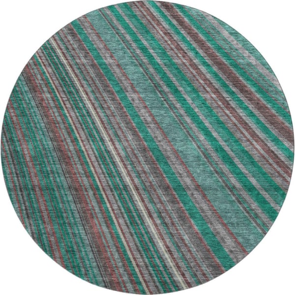 Mayfield Premium Machine Washable Abstract AMF981 Emerald 8 ft. x 8 ft. Round Rug