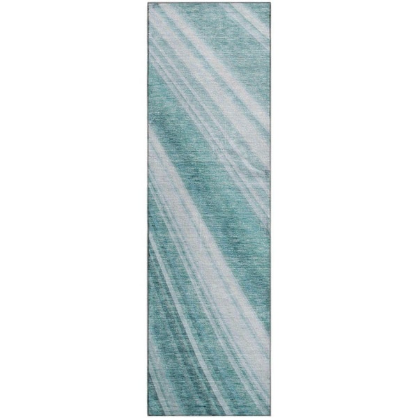 Mayfield Premium Machine Washable Abstract AMF981 Teal 2 ft. 3 in. x 7 ft. 6 in. Runner Rug