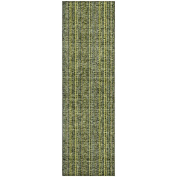 Mayfield Premium Machine Washable Abstract AMF982 Olive 2 ft. 3 in. x 7 ft. 6 in. Runner Rug