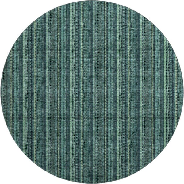 Mayfield Premium Machine Washable Abstract AMF982 Teal 8 ft. x 8 ft. Round Rug