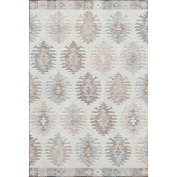 Mayfield Premium Machine Washable Abstract AMF983 Ivory 10 ft. x 14 ft. Area Rug