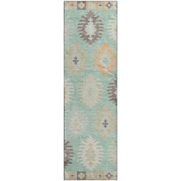 Mayfield Premium Machine Washable Abstract AMF983 Mint 2 ft. 3 in. x 7 ft. 6 in. Runner Rug