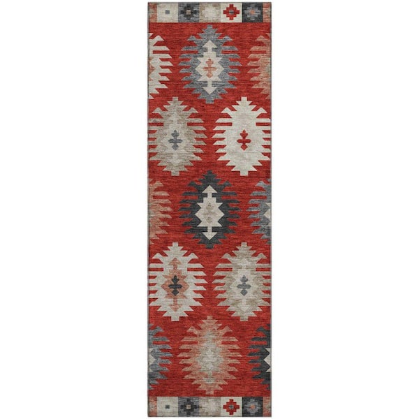 Mayfield Premium Machine Washable Abstract AMF983 Red 2 ft. 3 in. x 7 ft. 6 in. Runner Rug