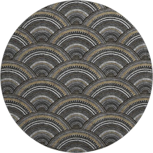 Mayfield Premium Machine Washable Abstract AMF984 Black 8 ft. x 8 ft. Round Rug