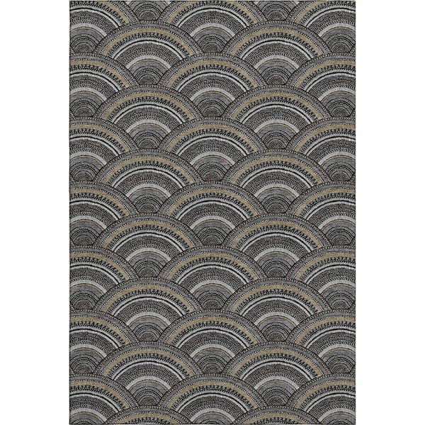 Mayfield Premium Machine Washable Abstract AMF984 Black 9 ft. x 12 ft. Area Rug