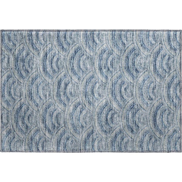Mayfield Premium Machine Washable Abstract AMF984 Denim 1 ft. 8 in. x 2 ft. 6 in. Area Rug