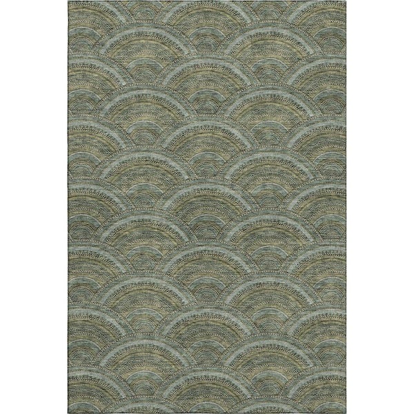 Mayfield Premium Machine Washable Abstract AMF984 Olive 5 ft. x 7 ft. 6 in. Area Rug
