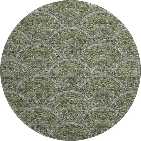 Mayfield Premium Machine Washable Abstract AMF984 Olive 8 ft. x 8 ft. Round Rug