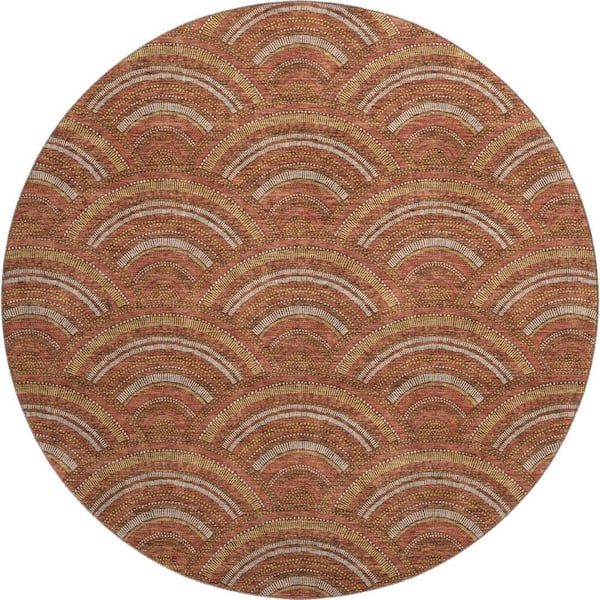 Mayfield Premium Machine Washable Abstract AMF984 Paprika 8 ft. x 8 ft. Round Rug