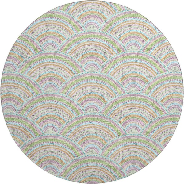 Mayfield Premium Machine Washable Abstract AMF984 Pearl 8 ft. x 8 ft. Round Rug