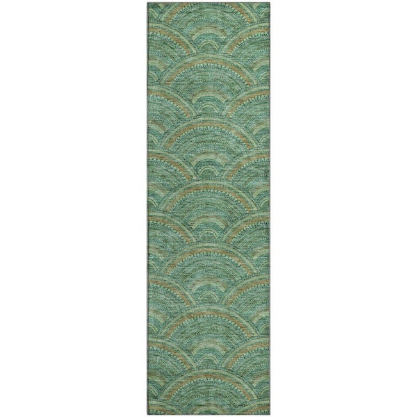 Mayfield Premium Machine Washable Abstract AMF984 Sage 2 ft. 3 in. x 7 ft. 6 in. Runner Rug