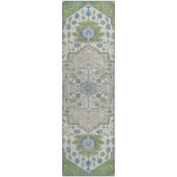 Mayfield Premium Machine Washable Abstract AMF985 Aloe 2 ft. 3 in. x 7 ft. 6 in. Runner Rug