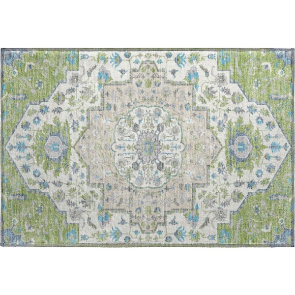 Mayfield Premium Machine Washable Abstract AMF985 Aloe 2 ft. x 3 ft. Area Rug