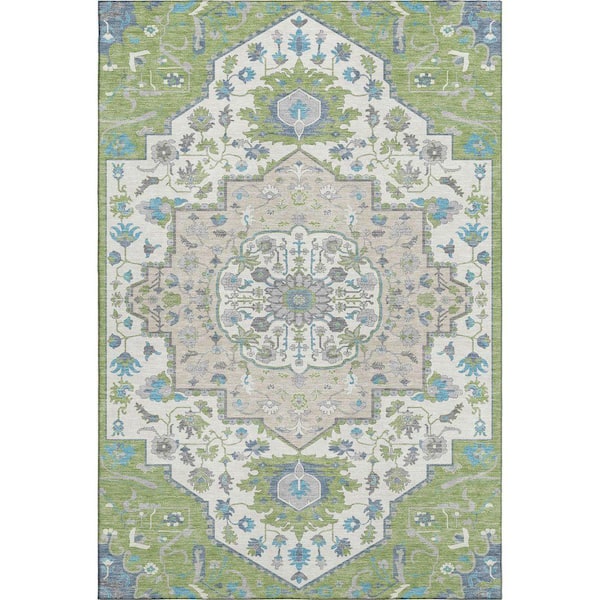 Mayfield Premium Machine Washable Abstract AMF985 Aloe 5 ft. x 7 ft. 6 in. Area Rug