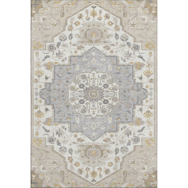 Mayfield Premium Machine Washable Abstract AMF985 Beige 3 ft. x 5 ft. Area Rug