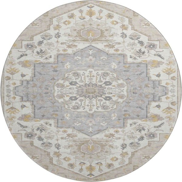 Mayfield Premium Machine Washable Abstract AMF985 Beige 8 ft. x 8 ft. Round Rug