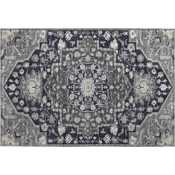 Mayfield Premium Machine Washable Abstract AMF985 Black 2 ft. x 3 ft. Area Rug