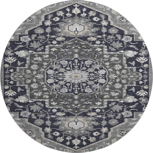 Mayfield Premium Machine Washable Abstract AMF985 Black 8 ft. x 8 ft. Round Rug