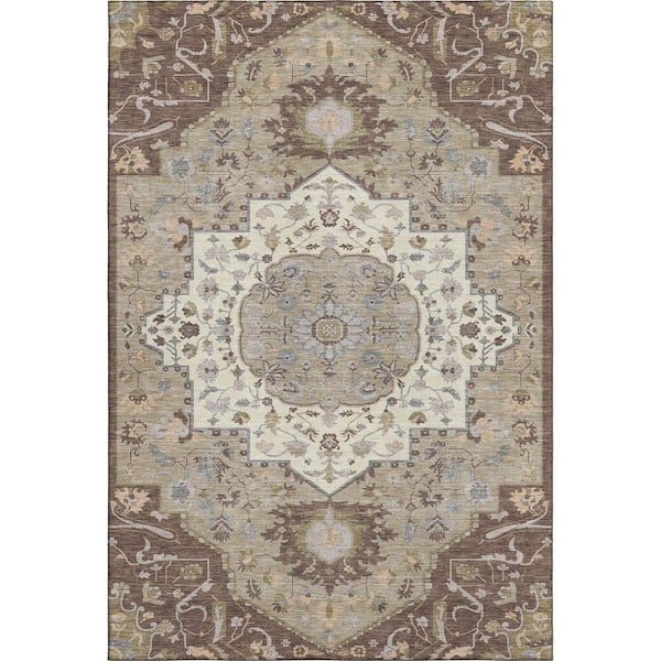 Mayfield Premium Machine Washable Abstract AMF985 Chocolate 3 ft. x 5 ft. Area Rug