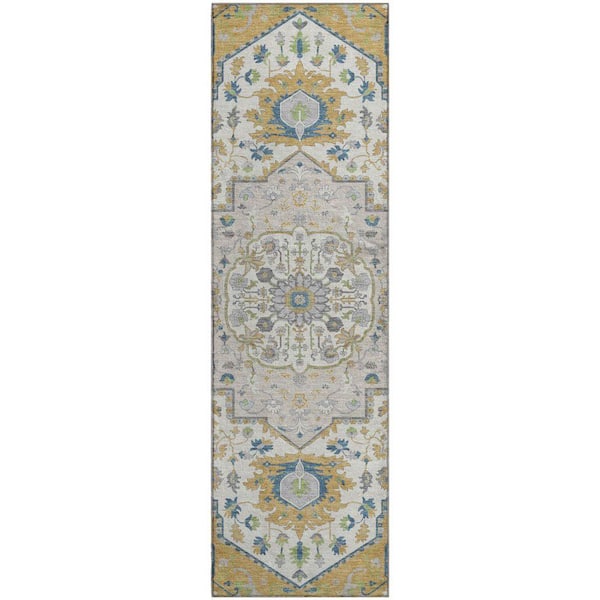 Mayfield Premium Machine Washable Abstract AMF985 Gold 2 ft. 3 in. x 7 ft. 6 in. Runner Rug