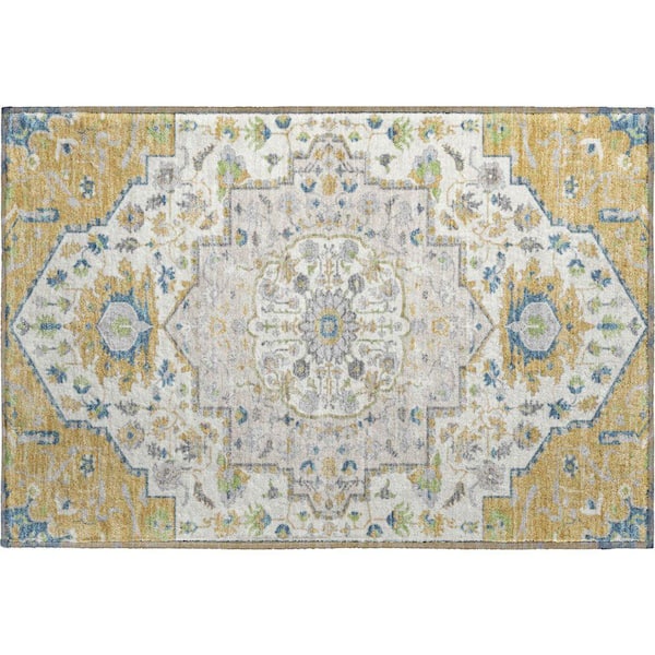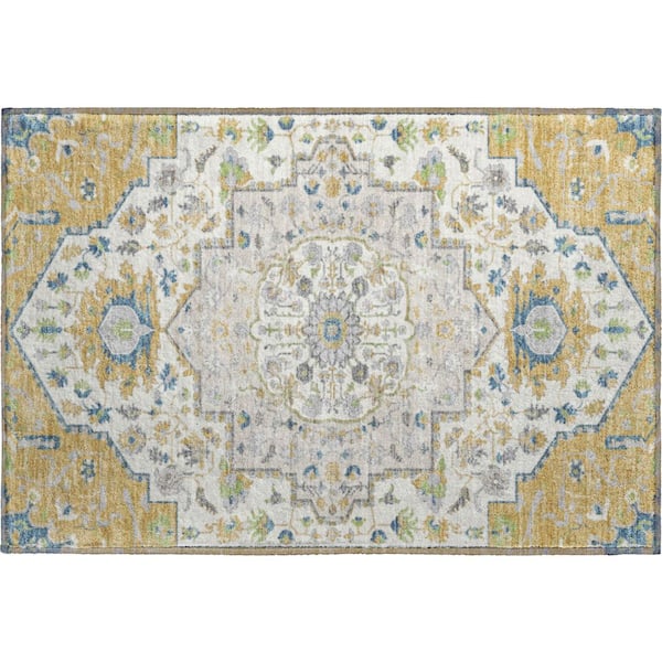 Mayfield Premium Machine Washable Abstract AMF985 Gold 2 ft. x 3 ft. Area Rug