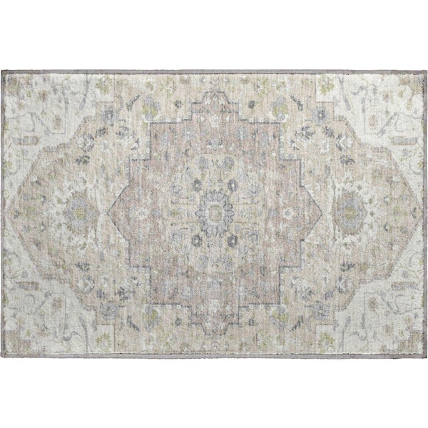 Mayfield Premium Machine Washable Abstract AMF985 Ivory 2 ft. x 3 ft. Area Rug