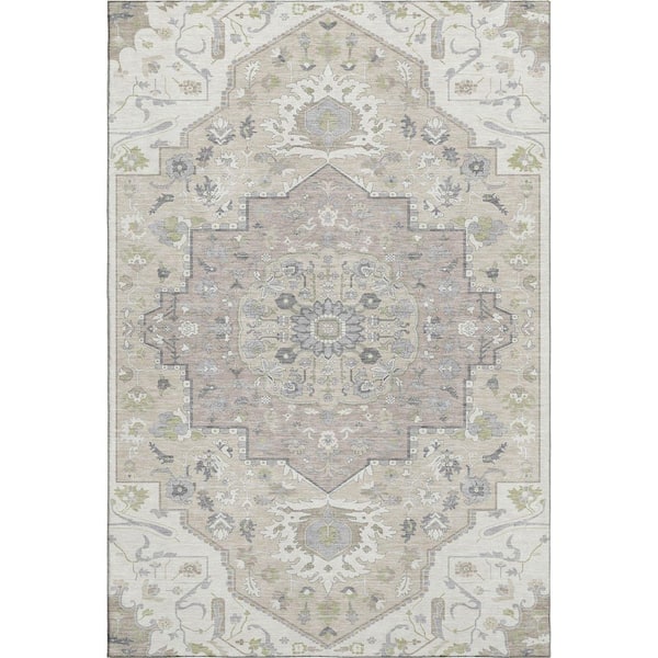 Mayfield Premium Machine Washable Abstract AMF985 Ivory 3 ft. x 4 ft. Area Rug