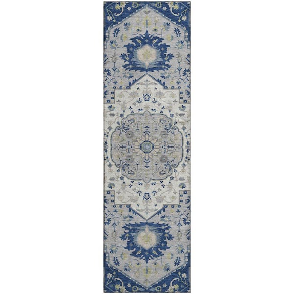 Mayfield Premium Machine Washable Abstract AMF985 Navy 2 ft. 3 in. x 7 ft. 6 in. Runner Rug