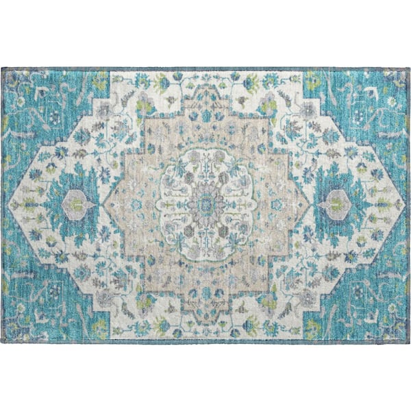 Mayfield Premium Machine Washable Abstract AMF985 Teal 2 ft. x 3 ft. Area Rug
