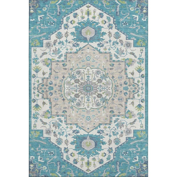 Mayfield Premium Machine Washable Abstract AMF985 Teal 5 ft. x 7 ft. 6 in. Area Rug