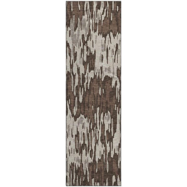 Mayfield Premium Machine Washable Abstract AMF986 Brown 2 ft. 3 in. x 7 ft. 6 in. Runner Rug