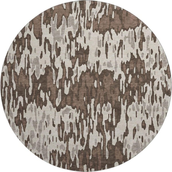 Mayfield Premium Machine Washable Abstract AMF986 Brown 8 ft. x 8 ft. Round Rug