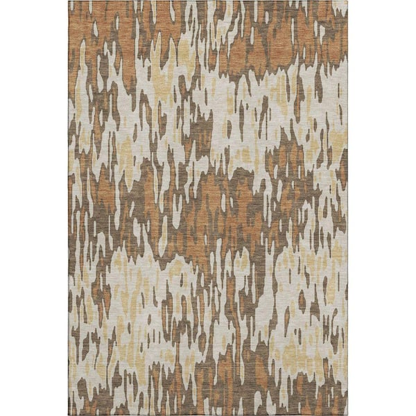 Mayfield Premium Machine Washable Abstract AMF986 Copper 3 ft. x 5 ft. Area Rug