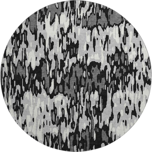 Mayfield Premium Machine Washable Abstract AMF986 Gray 8 ft. x 8 ft. Round Rug