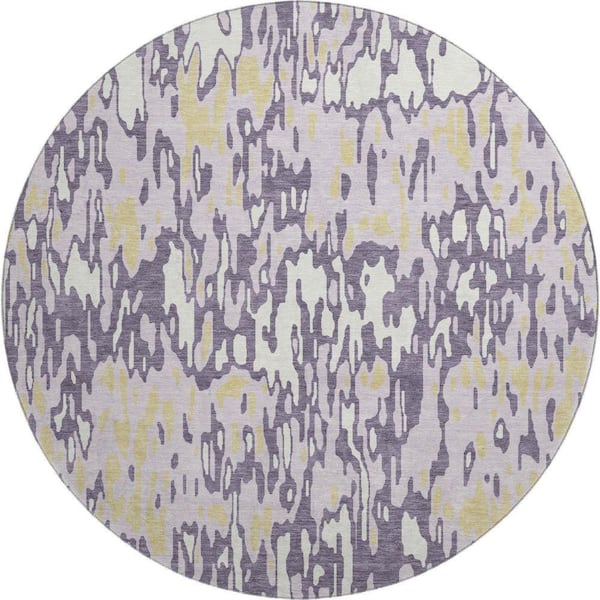 Mayfield Premium Machine Washable Abstract AMF986 Purple 8 ft. x 8 ft. Round Rug